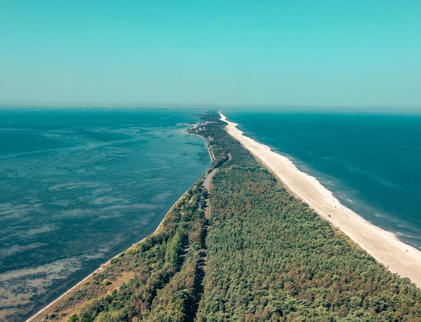 On one side lies the Morze Bałtyckie, and on the other the Zatoka Pucka.